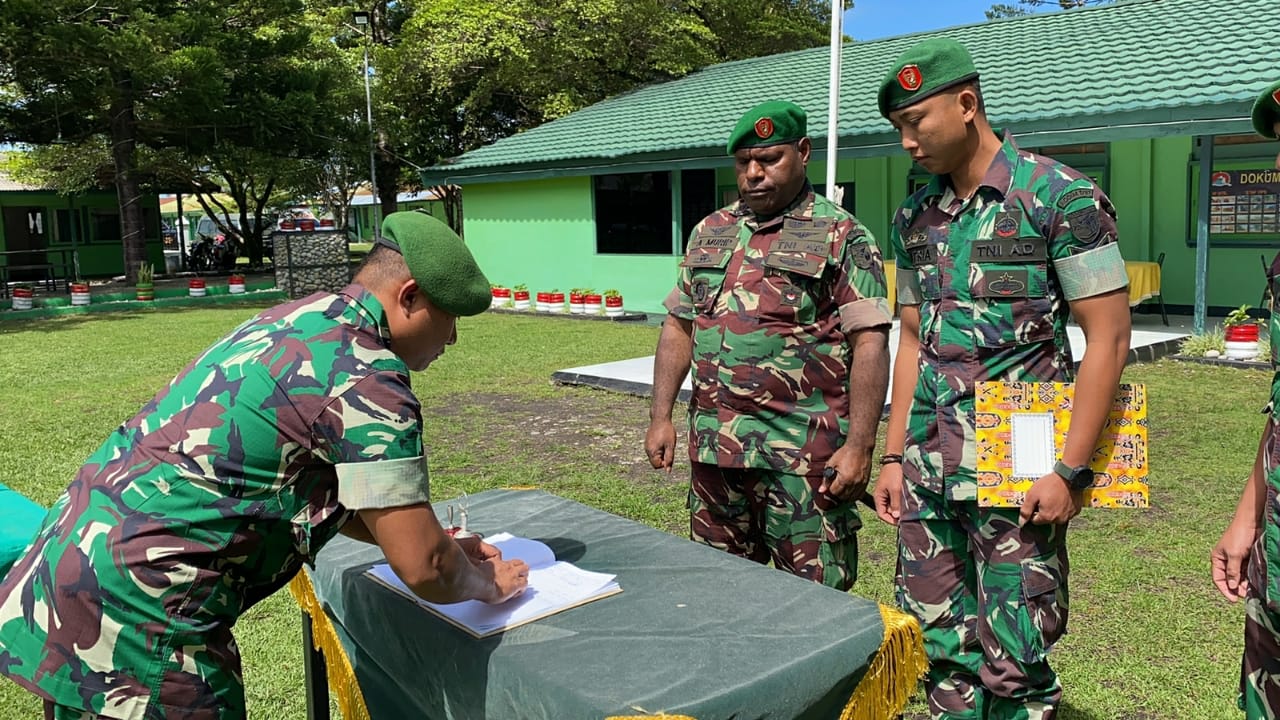 Wamena (KPN) – Dandim 1702/JWY Letkol Cpn Athenius Murip, S.H.,M.H memimpin acara Corps Raport tradisi pindah satuan anggota Kodim 1702/JWY bertempat di lapangan upacara Kodim 1702/JWY jln Yos Sudarso Kabupaten Jayawijaya. (05/01/2023)
