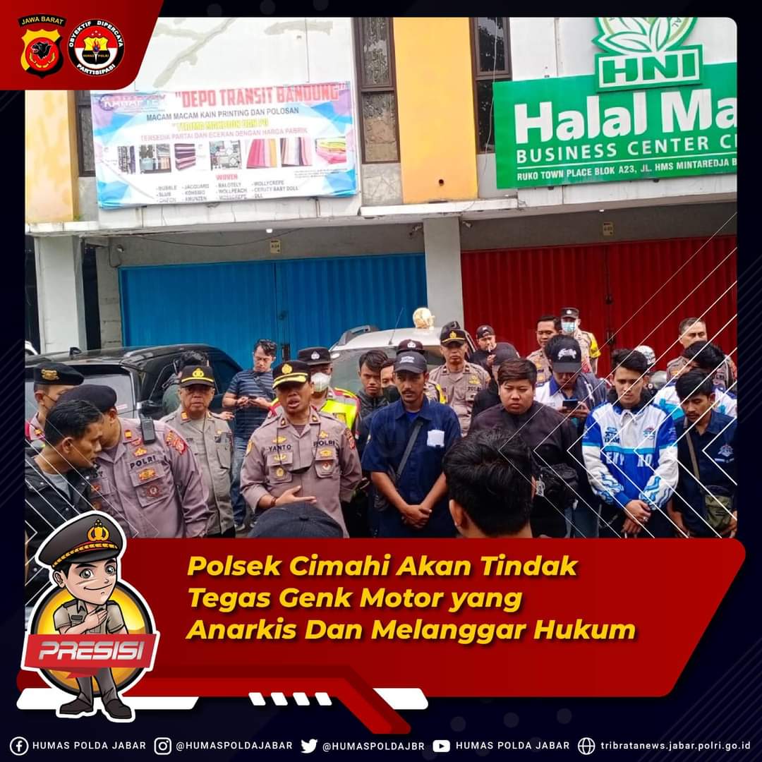 Bandung (KPN) – Polres Cimahi Polda Jabar, Kapolres Cimahi AKBP Aldi Subartono S.H., S.I.K., M.H., CPHR. melalui Kapolsek Cimahi Kompol Yanto B Ruslan S. AP. akan menindak tegas setiap anggota genk motor yang anarkis dan melakukan pelanggaran hukum.