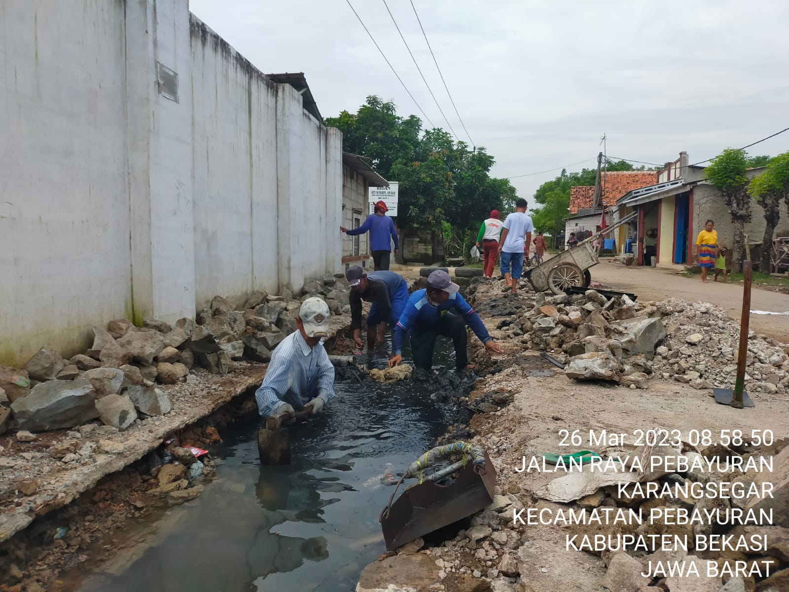 KABAR PUBLIK BEKASI | Perlunya menjaga kebersihan lingkungan sekitar merupakan hal terpenting selama bulan Ramadhan ini. “Sangat penting bagi kita untuk tetap menjaga dan meningkatkan kebersihan lingkungan di sekitar kita, apalagi disaat bulan Ramadhan, Hal Ini Di Ungkapkan Serma Firman Babinsa Koramil 11 Pebayuran Kodim 0509 Kabupaten Bekasi, Saat Melaksanakan Pembersihan saluran air yang tersumbat kotoran sampah di Kampung Babakan rengas Dusun 2 RT 03 RW 01 Desa Karangsegar Minggu 26/3/2023