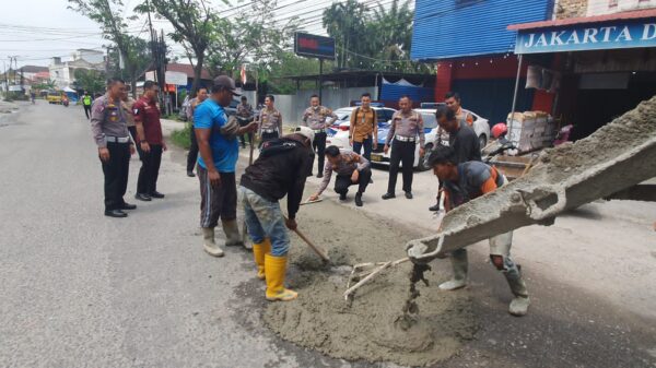 Selain mengawasi pengerjaan pengecoran jalan yang berlubang, Dirlantas Polda Riau juga menyampaikan himbauan kepada masyarakat agar tetap berhati-hati dan tertib dalam berlalulintas.