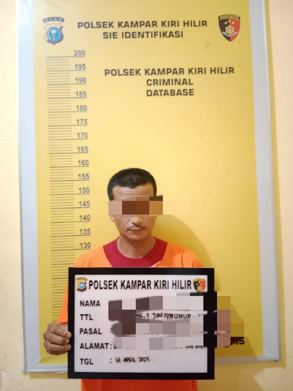 Kemudian pada Jum’at (13/4/2023) sekitar pukul 22.00 WIB, anggota Reskrim Polsek Kampar Kiri Hilir mendapat informasi bahwa pelaku sedang berada dirumahny.