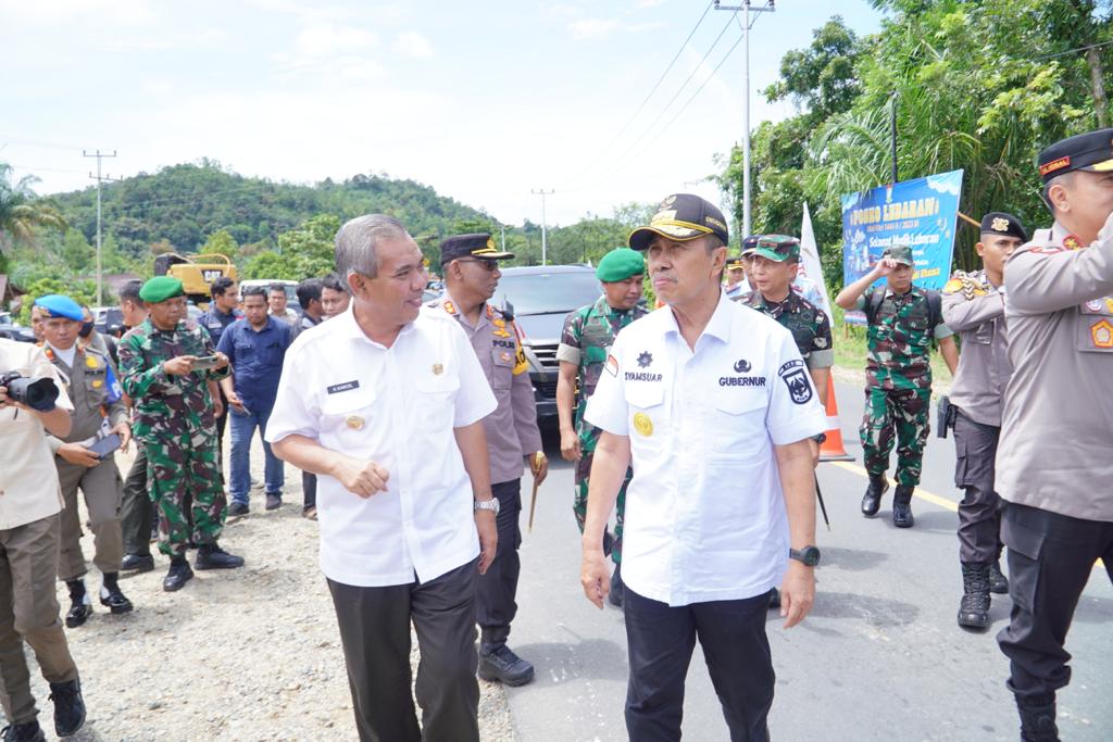 Gubernur Riau saat peninjauan menyampaikan kepada seluruh pemudik yang melewati jalan lintas Riau-Sumbar dapat mematuhi peraturan lalu lintas dan menjaga keamanan dalam berkendara.