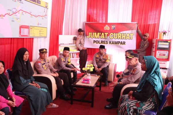 KAMPAR (KPN) – Kali ini, AKBP Didik Priyo Sambodo SIK bersama PJU Polres Kampar melaksanakan kegiatan Jum’at curhat di Pospam Ops Ketupat Lapangan Merdeka Kecamatan Bangkinang Kota, Jum’at (21/4/2023) sekira pukul 09.00 WIB.