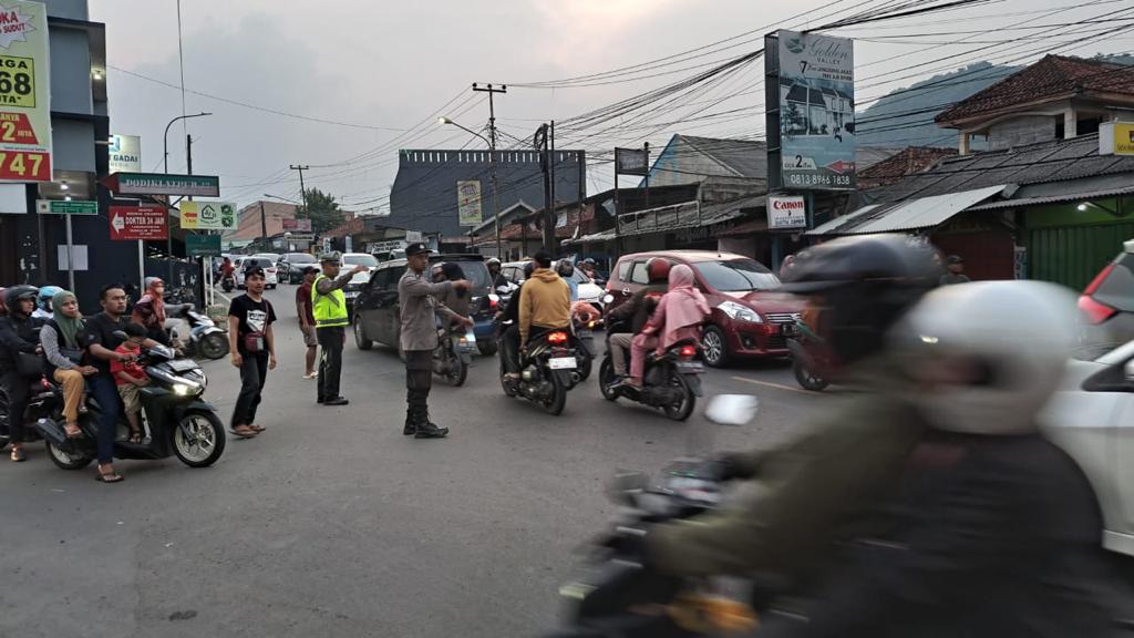 Polres Bogor (KPN) – Polsek Ciampea Polres Bogor Polda Jabar, Personil Pospam Warung Borong melaksanakan giat pengaturan lalin di sekitaran Pos Pam, Sabtu (22/4/2023).