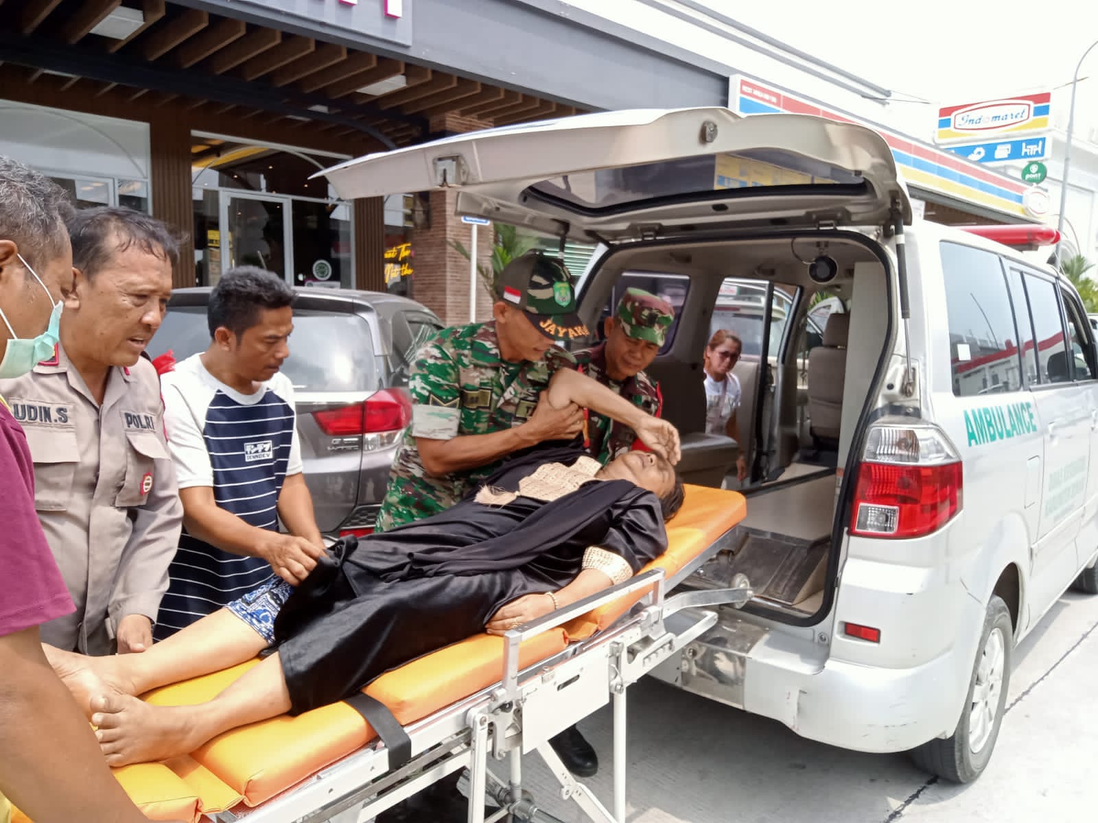 Anggota kodim 0509 Kabupaten Bekasi Serma Tohadi bersama Serda Asep Babinsa Koramil 01 Tambun di lokasi langsung mengevakusi dan membawa korban ke mobil dinas kesehatan Jumat 28/4/2023