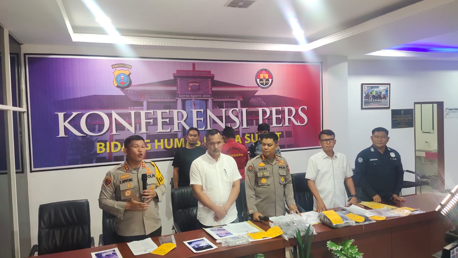 Dalam kegiatan Konferensi Pers yang digelar di Ruangan Konferensi Pers Bidhumas Mako Polda Sumatera Utara Pada hari Kamis, 27 April 2023 sekira Pkl.19.00 WIB, tampak hadir para Pejabat Utama Polda Sumatera Utara seperti Dirkrimum Polda Sumut Kombes Pol. Sumaryono, Kabid Humas Polda Sumut Kombes Hadi Wahyudi, S.I.K., S.H., Wadir Krimum Polda Sumut AKBP Alamsyah P Hasibuan, Kasubdit Penmas Humas Polda Sumut, AKBP Hermansyah, Kapolres Simalungun AKBP Ronald F.C Sipayung, S.H., S.I.K., M.H., serta Kasat Reskrim Polres Simalungun AKP. Rachmat Aribowo, S.I.K., M.H.(joe)