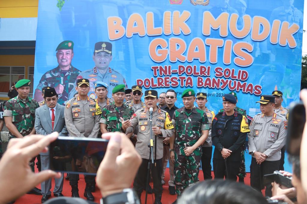 BANYUMAS (KPN) – Sebanyak 500 peserta balik mudik gratis “Sinergitas TNI-Polri Solid” Polresta Banyumas diberangkatkan. Kegiatan ini di pimpin langsung oleh Kapolda Jawa Tengah bersama unsur pimpinan TNI Polri pada pukul 09.00 wib, di Gor Satria Purwokerto, Sabtu (29/3/24).