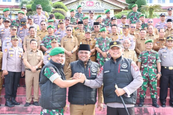 PELALAWAN (KPN) – Guna menciptakan situasi kamtibmas yang aman dan kondusif di Kabupaten Pelalawan jajaran Pemerintah Daerah Kabupaten Pelalawan bersama TNI-Polri taja apel sinergitas di halaman Kantor Bupati Kabupaten Pelalawan, Senin (8/5/2023).