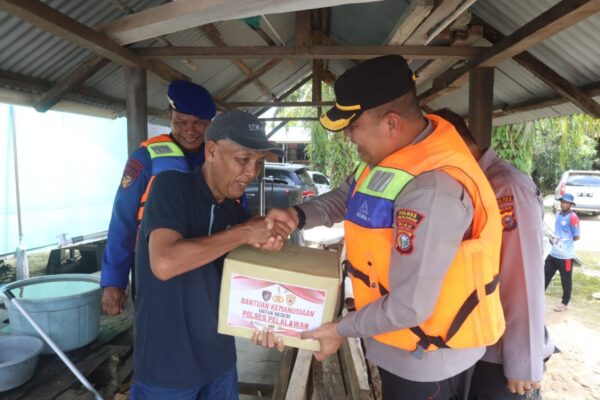 PELALAWAN (KPN) – Kapolres Pelalawan, AKBP Suwinto SH SIK pimpin langsung penyerahan Bantuan Kemanusiaan Untuk Negeri kepada masyarakat nelayan yang bermukim di pesisir Sungai Kampar Dusun Kualo, Kelurahan Pangkalan Kerinci Kota Kabupaten Pelalawan, Jumat (19/5/ 2023).