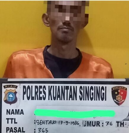 Kapolres Kuansing AKBP Pangucap Priyo Soegito SIK MH melalui Kasat Reskrim AKP Linter Sihaloho SH MH menyampaikan, Satreskrim Polres Kuansing berhasil mengamankan satu orang berinisial AU (37) pelaku tindak pidana pencuriandi Jalan Halim Lingkungan II Kelurahan Simpang Tiga Kecamatan Kuantan Tengah Kabupaten Kuantan Singingi.