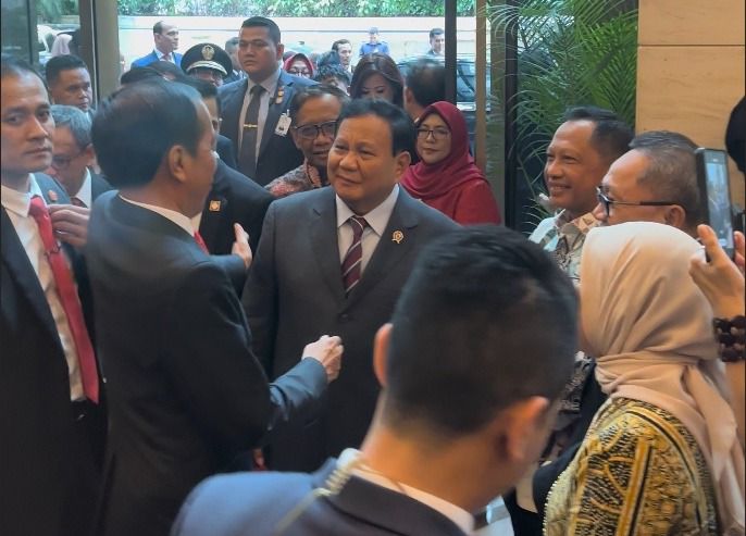 Prabowo dan Jokowi bercengkrama dan terlihat tertawa lepas saat penyambutan di hotel tersebut mendadak ramai di media sosial