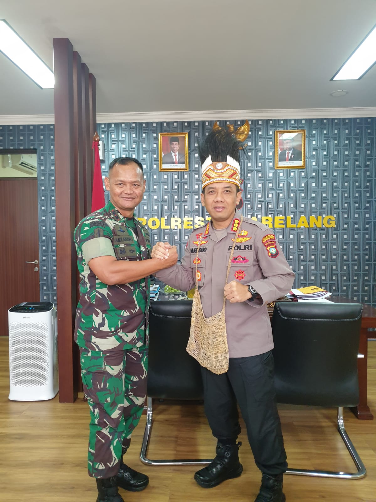 Tak lupa Danyonif Raider Khusus 136/TS Letkol Inf Andi Ariyanto, S.I.P memberikan oleh oleh atau cendramata khas Papua Barat kepada Kapolresta Barelang dan kemudian di pakaikan langsung oleh Danyonif Raider Khusus 136/TS Letkol Inf Andi Ariyanto, S.I.P .
