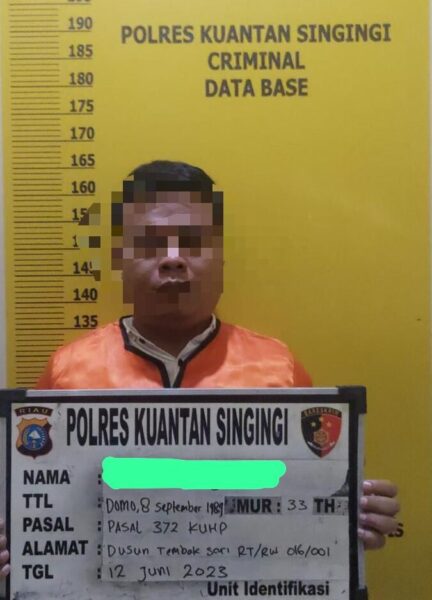 Kapolres Kuansing AKBP Pangucap Priyo Soegito, S.I.K, M.H, melalui Kasat Reskrim Polres Kuansing AKP Linter Sihaloho, S.H.,M.H “membenarkan penangkapan tersangka R (34), ditangkap lantaran diduga pelaku tindak pidana penggelapan, Kasus ini diketahui terjadi sejak tanggal 6 maret 2023 Sekira Pukul 13.00 WIB, ” jelas AKP Linter.