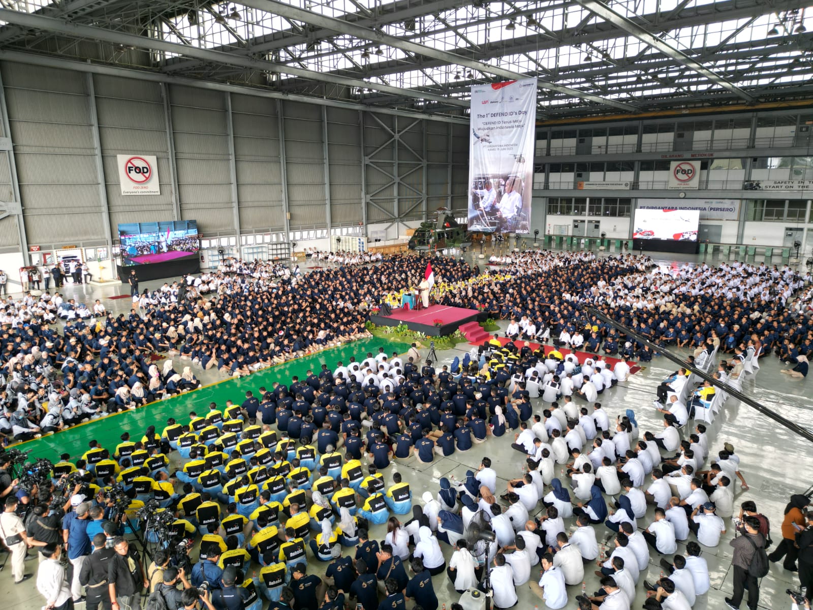 Kehadiran Prabowo di PTDI adalah untuk bertemu ribuan karyawan DEFEND ID. Total semua karyawan holding DEFEND ID hadir dari PT PAL, Dahana, PT Pindad, PT Dirgantara Indonesia, dan PT Len.(Red)
