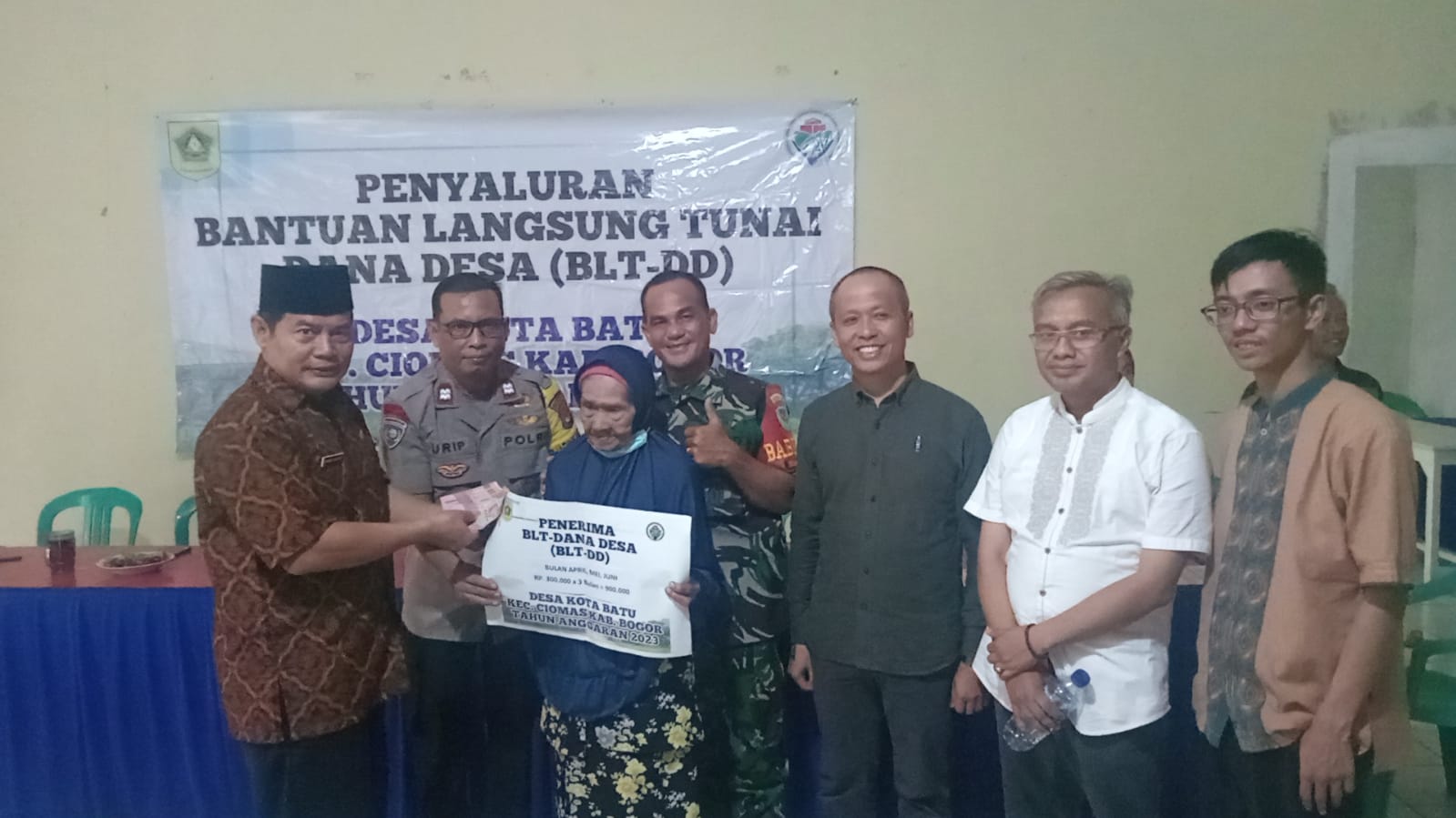 upaten Bogor,Adakan Kegiatan Penyaluran Bantuan Langsung Tunai ( BLT-DD) Tahun Anggaran 2023,Di Alokasi Bulan ,April,Mai, Juni, Bertempat DiAula Kantor Desa kota batu, jumat-16-06-2023