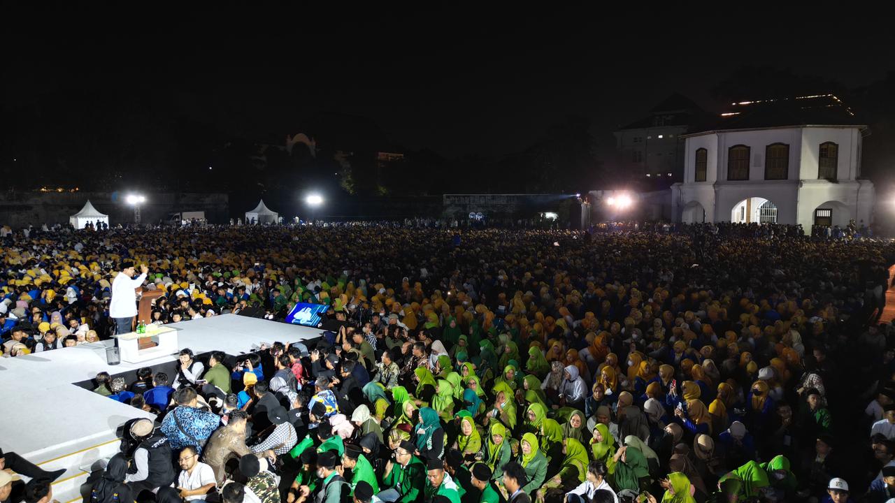 Adapun saat Prabowo tiba di lokasi acara di Benteng Vastenburg itu, para kader PMII menyambutnya dengan lantunan sholawat badar.
