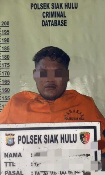 KAMPAR (KPN) – AD (23) warga Desa Teratak Buluh Kecamatan Siak Hulu Kabupaten Kampar ditangkap Polsek Siak Hulu, Selasa (4/7/2023) kemarin sekira pukul 21.45 WIB.