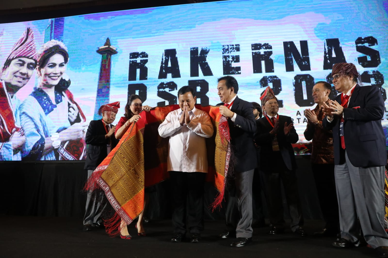 Jakarta (KPN) – Prabowo Subianto mengenang pahlawan-pahlawan hingga koleganya saat masih aktif sebagai TNI saat menghadiri acara Rakernas Punguan Simbolon dohot Boruna Indonesia (PSBI), di Hotel Arya Duta, Jakarta, Jumat (7/7/2023).