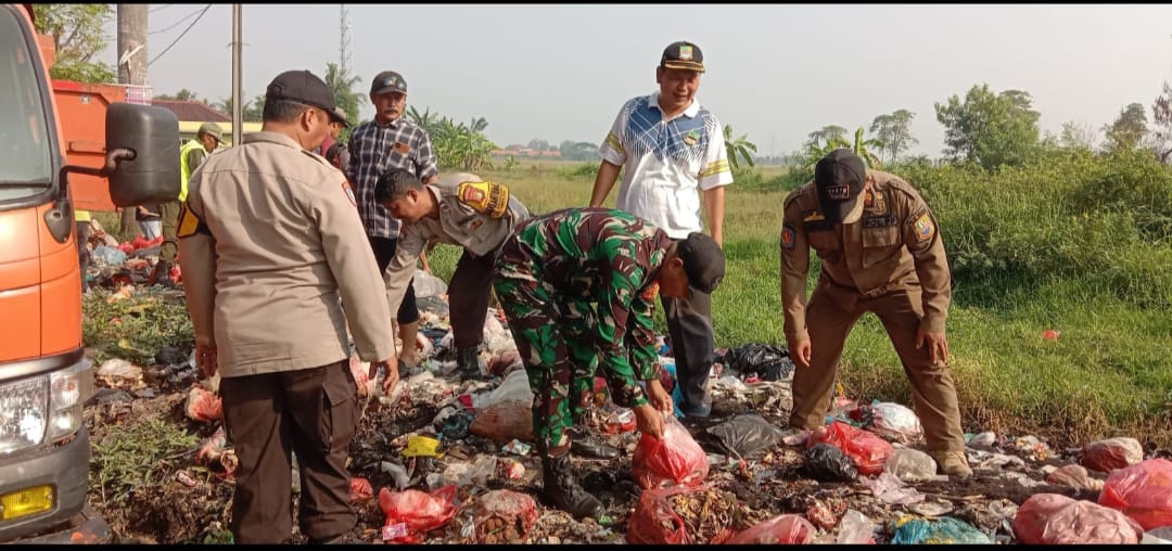 Kabar Publik Bekasi | Sebagai Upaya Untuk Menciptakan Lingkungan di Desa Binaanya, Peltu Amarullah Anggota Koramil 10/Sukatani Kodim 0509 Kabupaten Bekasi, Bersama Bimaspol dan Masyarakat Membersihkan Tumpukan Sampah liar.
