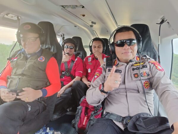 PELALAWAN (KPN) | AKBP Suwinto SH SIK bersama Kepala BPBD Kabupaten Pelalawan melaksanakan patroli udara guna memantau situasi dan mengecek lokasi Karhutla di Kawasan Taman Nasional Teso Nilo, Kamis (3/8/2023) kemaren.