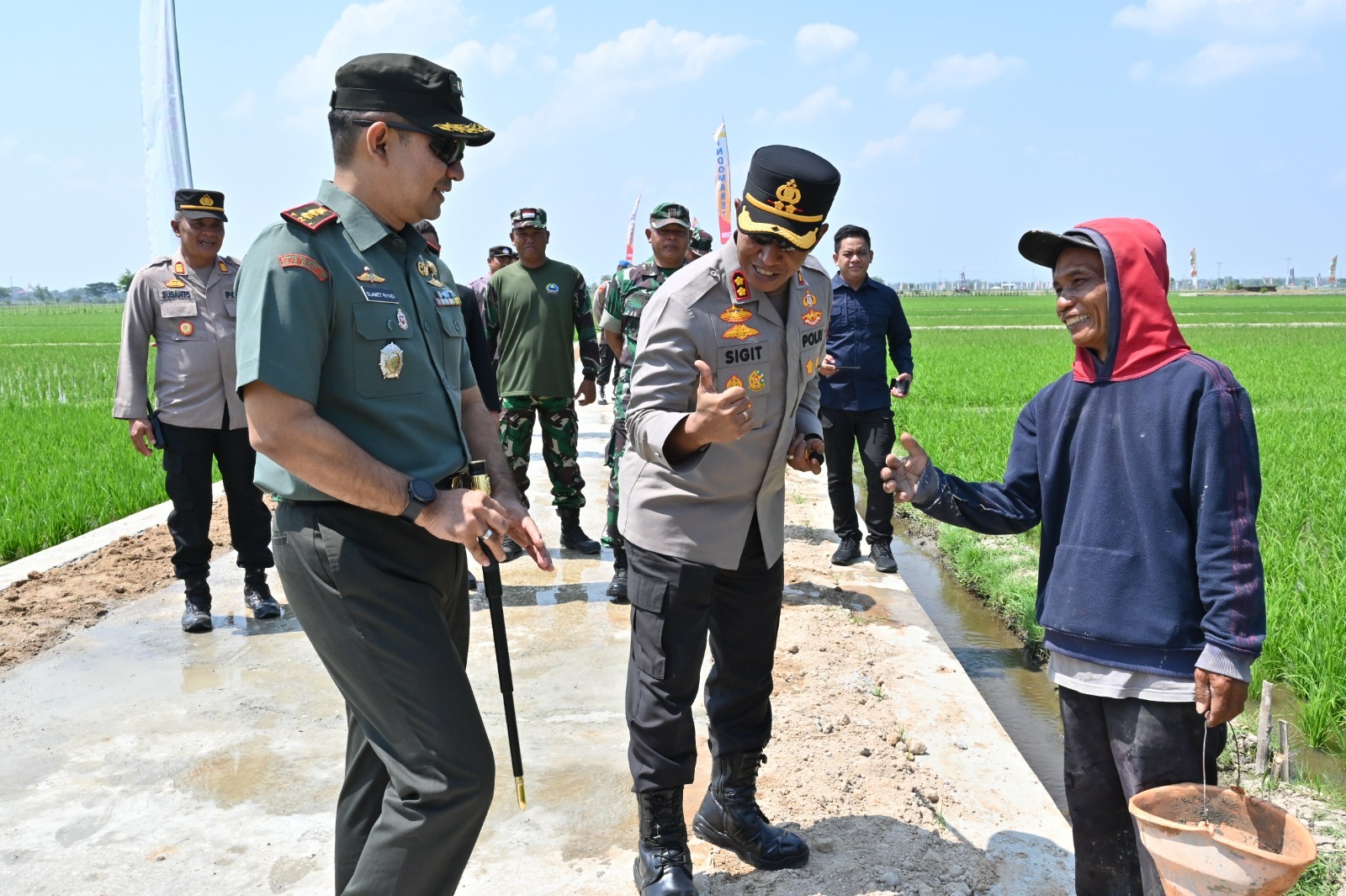 Sukoharjo (KPN) – Dandim 0726/Sukoharjo Letkol Czi Slamet Riyadi, S.E bersama Kapolres Sukoharjo AKBP Sigit, S.I.K., M.H. di dampingi Forkopincam Polokarto dan Kepala Desa Karangwuni meninjau langsung pelaksanaan TNI Manunggal Membangun Desa (TMMD) Sengkuyung Tahap II di Desa Karangwuni, Kecamatan Poloharto, Senin (07/08/2023).
