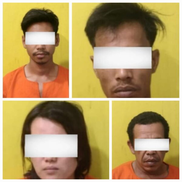 Empat orang tersangka yang diamankan polisi itu berinisial IS alias I (34), DI alias D (31), LA alias U (28), ketiganya merupakan warga Kepenghuluan Siarangarang Kecamatan Pujud, Kabupaten Rohil. Terakhir seorang ibu rumah tangga (IRT) inisial LLT alias D (27) warga Jalan Tuanku Tambusai Kelurahan Bagan Batu Kecamatan Bagan Sinembah, Kabupaten Rohil.