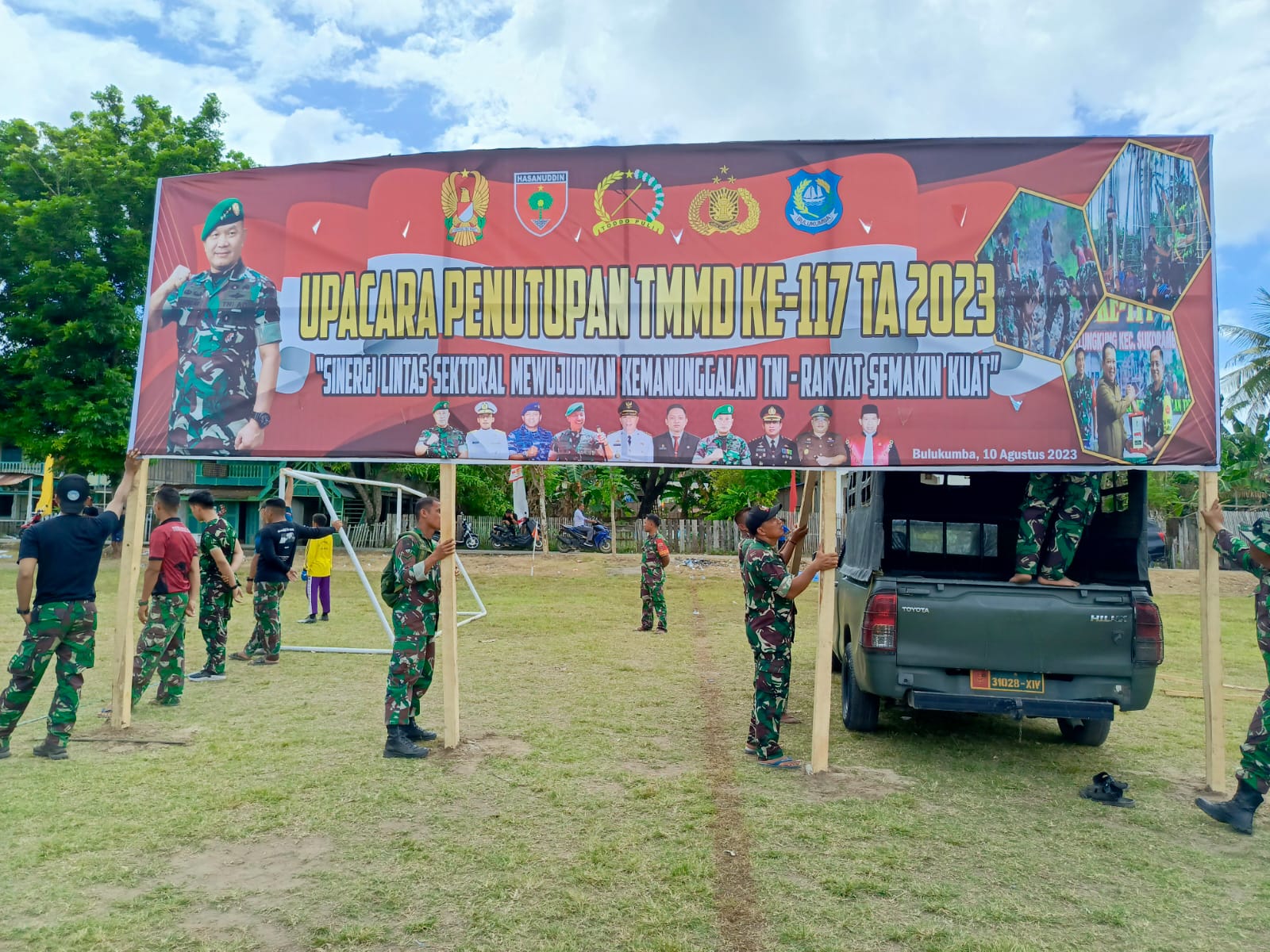 “Menjelang penutupan TMMD tentunya banyak sarana dan prasarana yang akan di siapkan termasuk pembersihan, pemasangan Baliho dan persiapan-persiapan lainnya untuk mendukung kegiatan di seputaran lapangan tempat upacara penutupan TMMD,” ujar Pasiterdim 1411/Bulukumba dan juga selaku Dan SSK Kapten Kav Andi Mapparanru