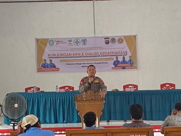 PELALAWAN (KPN) || Kapolres Pelalawan, AKBP Suwinto SH SIK menghadiri kunjungan mahasiswa KKN UIN Suska Riau di Gedung Maharajo Dindo Kecamatan Bunut Kabupaten Pelalawan, Sabtu (12/8/2023).