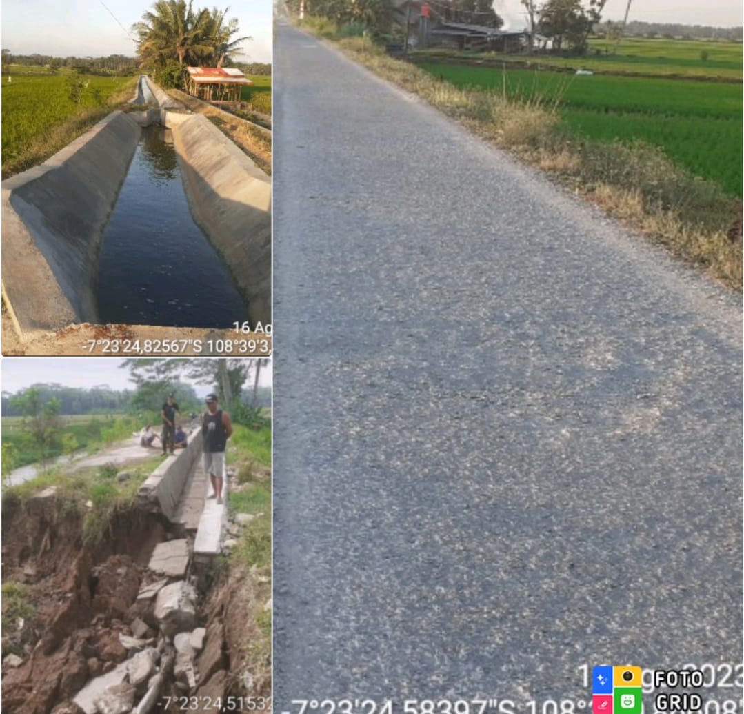 Bahwasan jalan Inspeksi tersebut dibangun bersamaan dengan saluran Air yang roboh pada Tanggal 02/06/2023. Diduga keras bahwa proyek pembangunan jalan Inspeksi tersebut adalah milik BBWS Citanduy. Yang dibangun Tahun 2023 dengan Nilai Puluhan Miliar Rupiah. Untuk mendapatkan keterangan lebih falid Tim menghubungi kepala desa setempat. Tapi nomor hp yang di hubungi sudah tidak aktif.