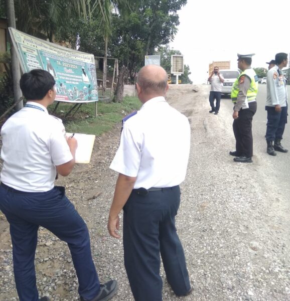 PELALAWAN (KPN) || Mencegah terjadinya kecelakaan lalu lintas dan fatalitas korban, Unit Kamsel Satlantas Polres Pelalawan bersama Dinas Perhubungan Kabupaten Pelalawan melaksanakan pengecekan kesejumlah lokasi rawan terjadinya kecelakaan lalu lintas, Senin (21/8/2023).