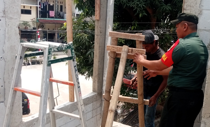 Kabar Publik Bekasi | Guna meningkatkan Kesejahteraan dan membangun keharmonisan Babinsa Koramil 0509-01 Tambun Serda Agus Rohman Soleh hadir bantu warganya yang sedang membangun rumah