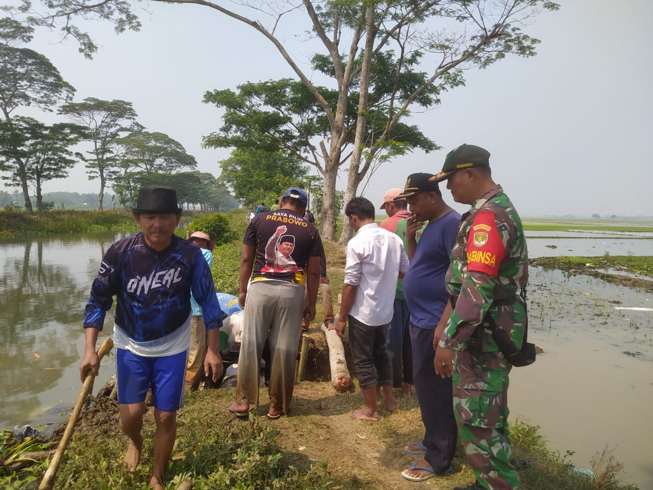 Kabar Publik Bekasi | Menyikapi Kegelisahan Masyarakat Pemerintah Desa Karang Haur Bersama Warga dan Babinsa Koramil 0509-11 Pebayuran Mulai Membangun Tanggul di kampung Teluk haur RT.03 RW.02 Desa karanghaur Kecamatan Pebayuran Kabupaten bekasi, Kamis 24/8/2023.