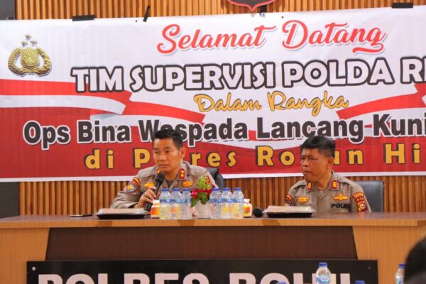 ROHIL (KPN) || Polres Rokan Hilir (Rohil) mendapat kunjungan dari Tim Supervisi Operasi Bina Waspada LK 2023 Polda Riau di Mapolres Rokan Hilir. Jumat 25 Agustus 2023 Pukul 13.50 WIB.