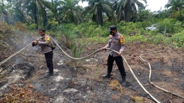 KAMPAR (KPN) || Upaya Polri, TNI dan Manggala Agni terus melakukan pemadaman dan pendinginan lahan di Desa Tarai Bangun Kecamatan Tambang, Senin (28/8/2023) terus dilakukan.