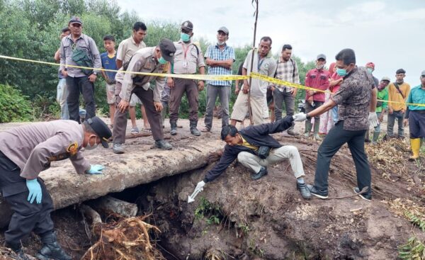 Karung berisi mayat korban ditemukan di pinggir parit yang berada di bawah jembatan, tepatnya di Jalan Akasia Kelurahan Bukit Kapur Kecamatan Bukit Kapur, Kota Dumai.