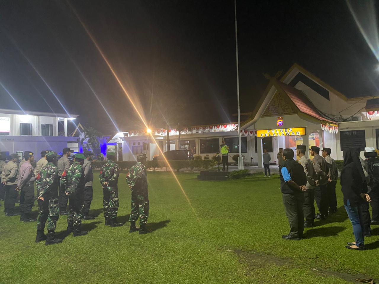 Apel siaga berlangsung di halaman Polres Pelalawan dengan melibatkan personil gabungan TNI- Polri.