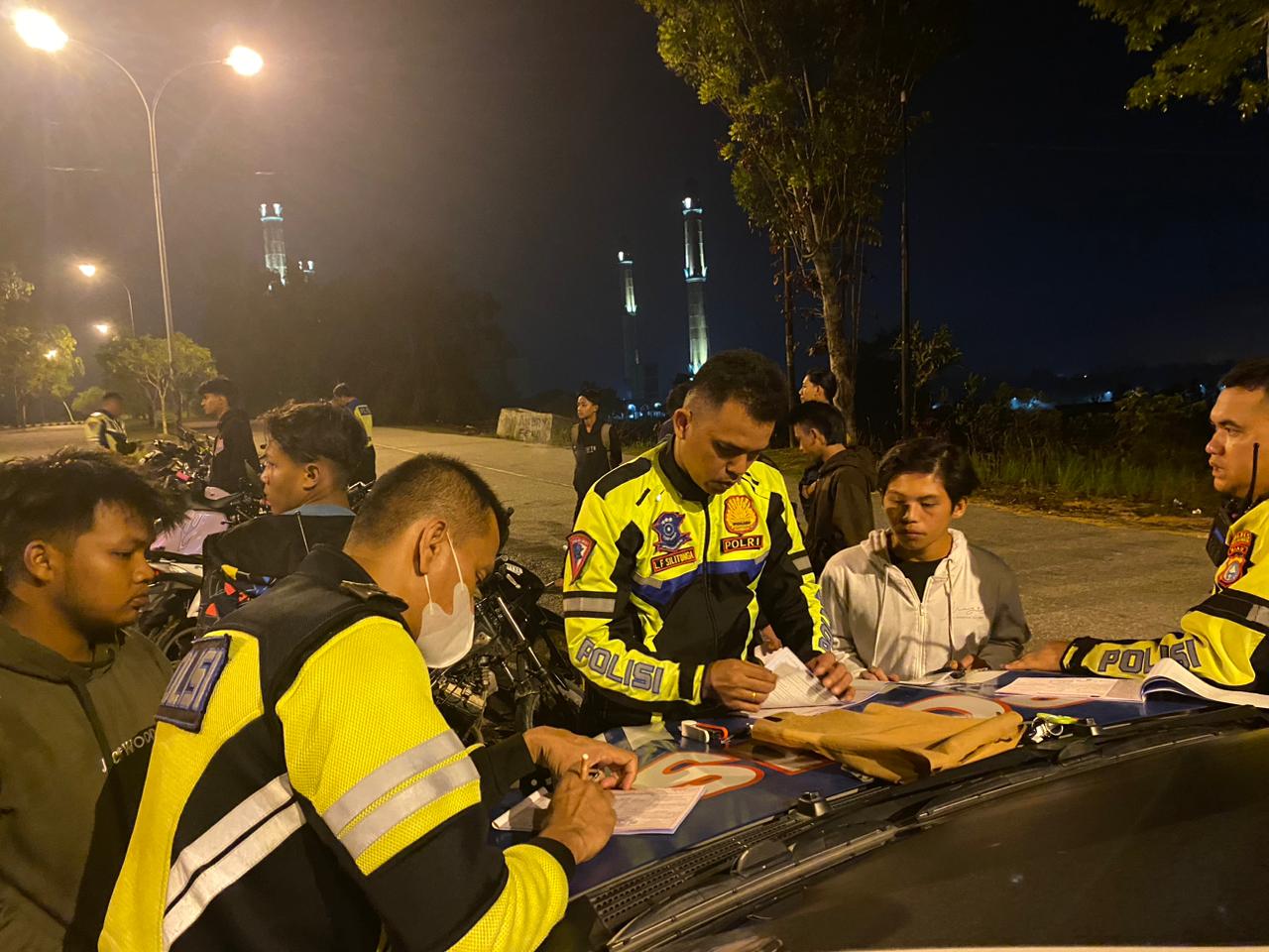 Kegiatan penertiban aksi balap liar dan sepeda motor menggunakan knalpot brong dilaksanakan dilokasi Perkantoran Bhakti Praja Kabupaten Pelalawan, Sabtu (9/9/ 2023) sekira pukul 22.30 WIB.