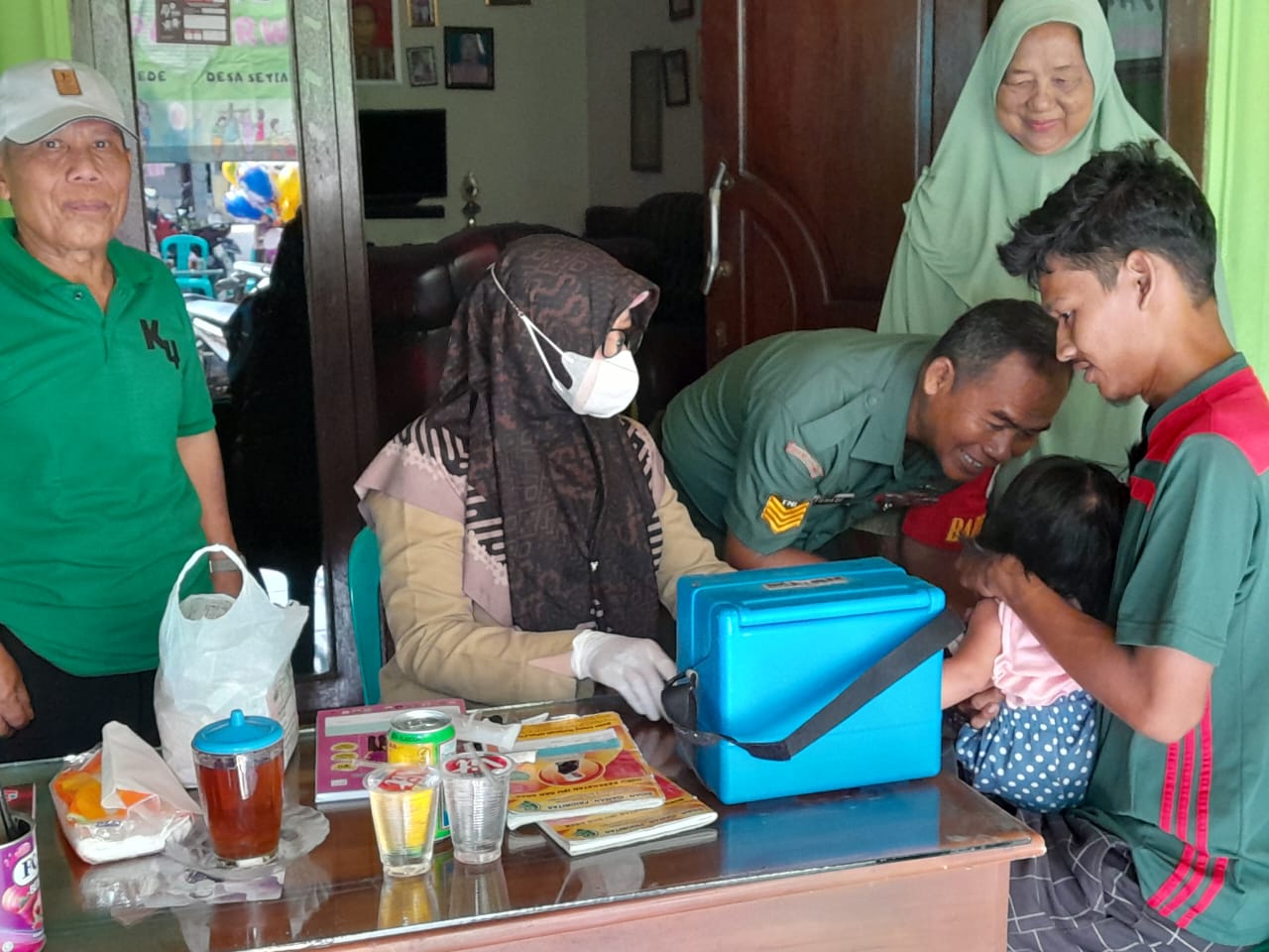 Serma Tohadi bersama Serda Kamro Sitanggang saat memberikan pendampingan di lokasi Mengatakan Kegiatan ini selain untuk menekan angka Stunting juga di lakukan