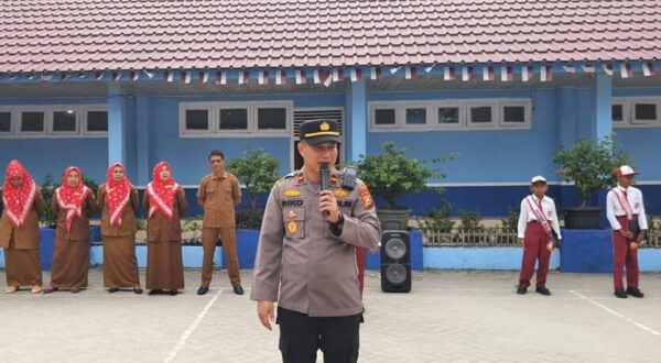 KAMPAR (KPN) || Kapolsek Perhentian Raja Ipda Riko Riski Masi SH MH melaksanakan kegiatan Police Go To School bersama para Kanit dan Bhabinkamtibmas Desa Pantai Raja Aipda Ardiansyah SH di SDN 001 Perhentian Raja Desa Pantai Raja Kec Perhentian Raja, Senin (18/09).