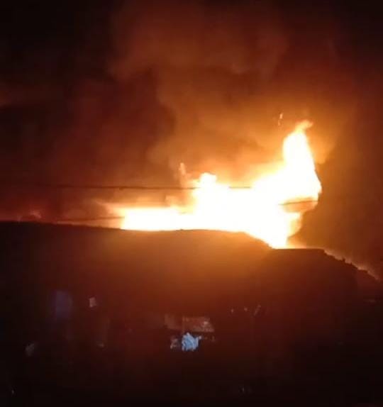 Dalam video yang diterima kabarpubliknews.com Rabu (27/9/2023) malam, api masih menyala di lokasi. Asap pekat tampak membubung ke udara.