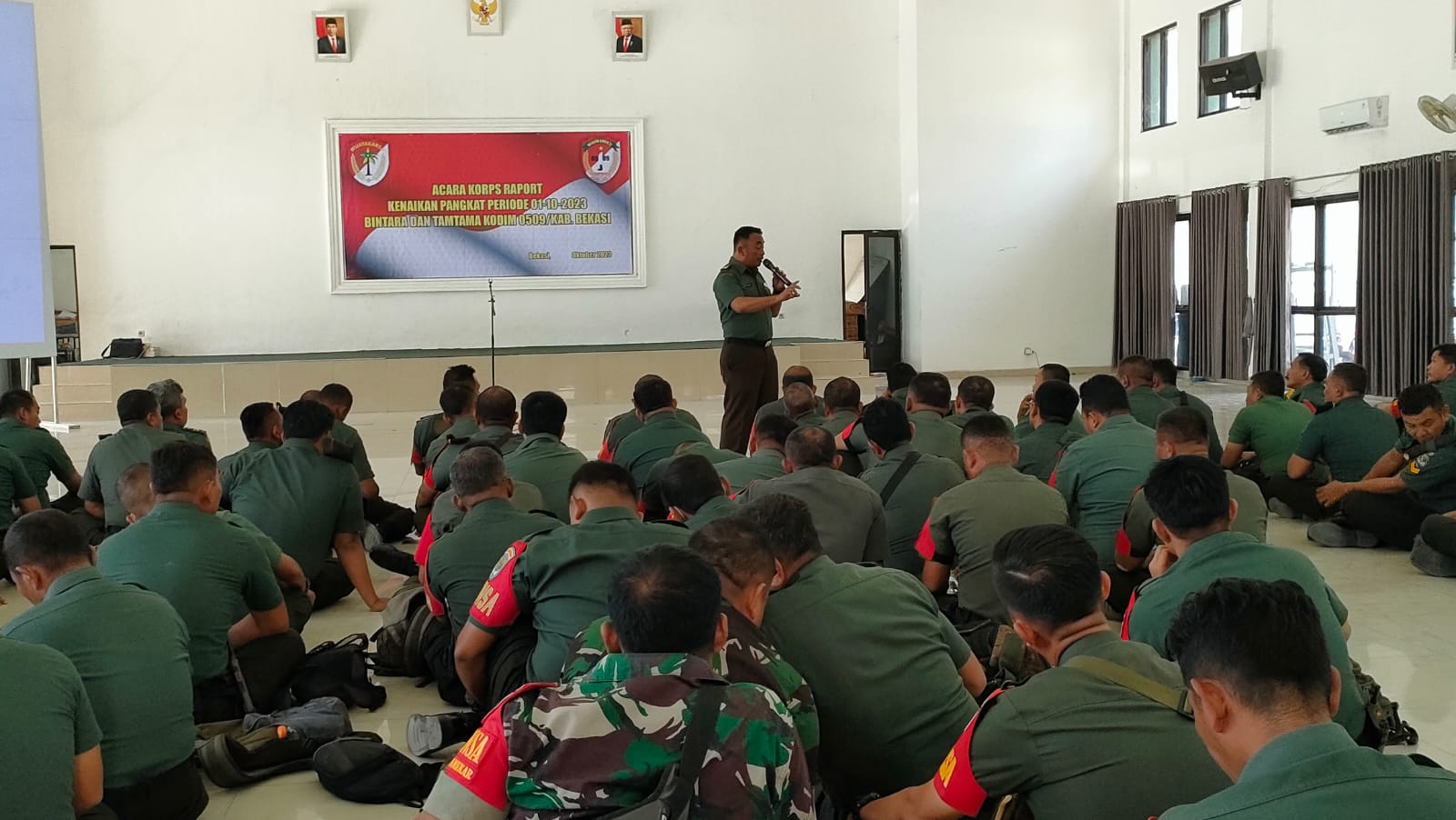 Kabar Publik Bekasi | Dalam rangka Sosialisasi Penggunaan Aplikasi Pelaporan bagi pengguna HP Milltrec Kodim 0509 Menggelar Apel Luar Biasa di ikuti Jajaran Babinsa Koramil Kodim 0509/Kab. Bekasi, di Aula Babinsa Desa Sukamahi Kecamatan Cikarang Pusat Kabupaten Bekasi, Pada Selasa 3/10/2023.