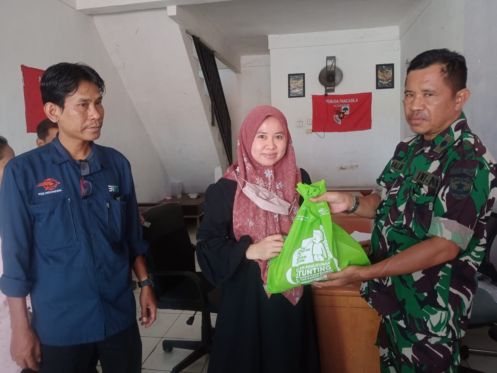 Selain Babinsa Peltu Mualim, Kegiatan Pendistribusian tersebut turut di bantu oleh Ali Usman PSM Kelurahan Kertasari, Dedi Petugas Verivikasi Pos dan Giro,