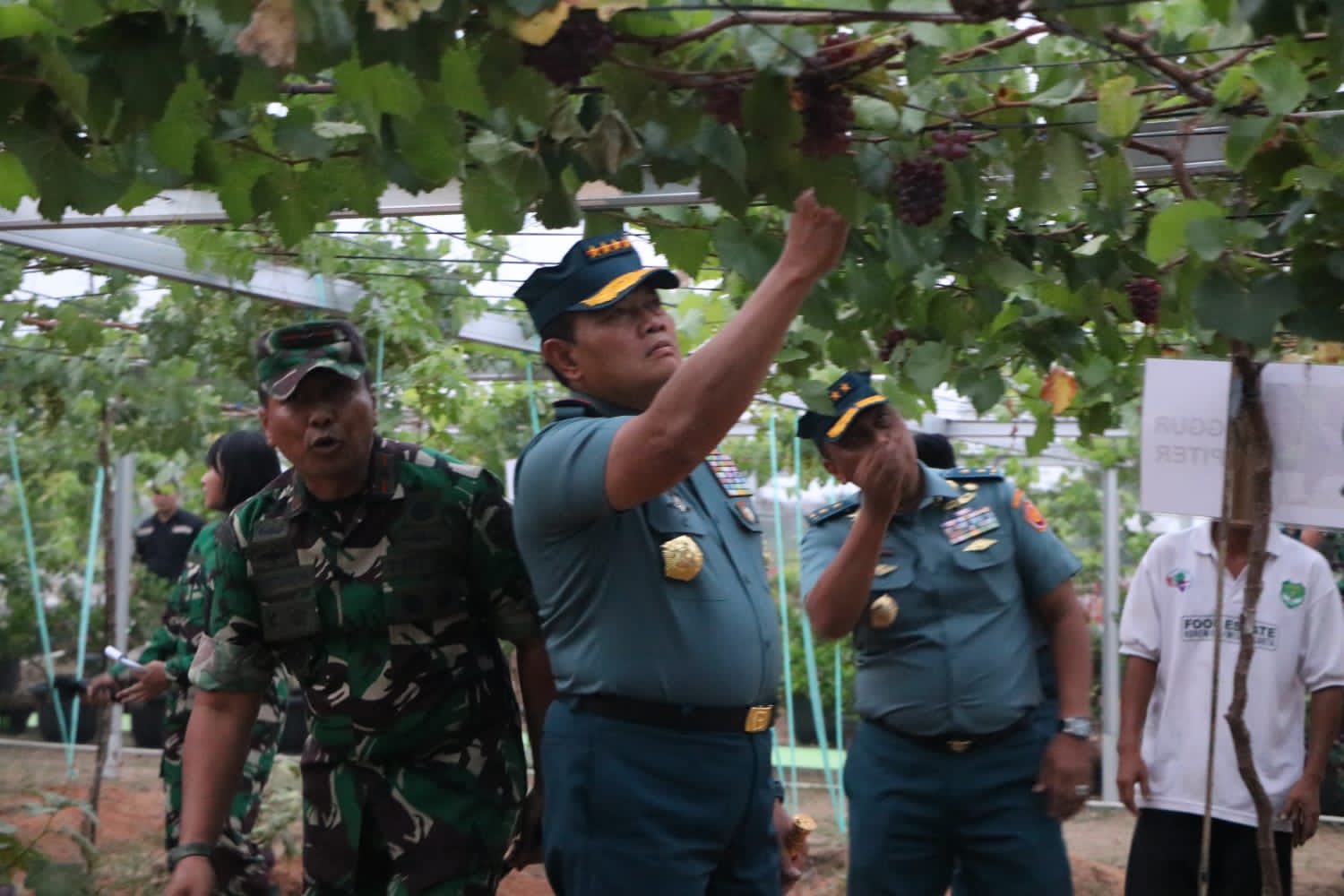 Dalam Kunjungan tersebut Panglima TNI Laksamana TNI H. Yudo Margono, S.E., M.M., C.S.F.A beserta rombongan mengecek langsung tanaman Jenis buah Anggur, buah Melon dan buah Labu