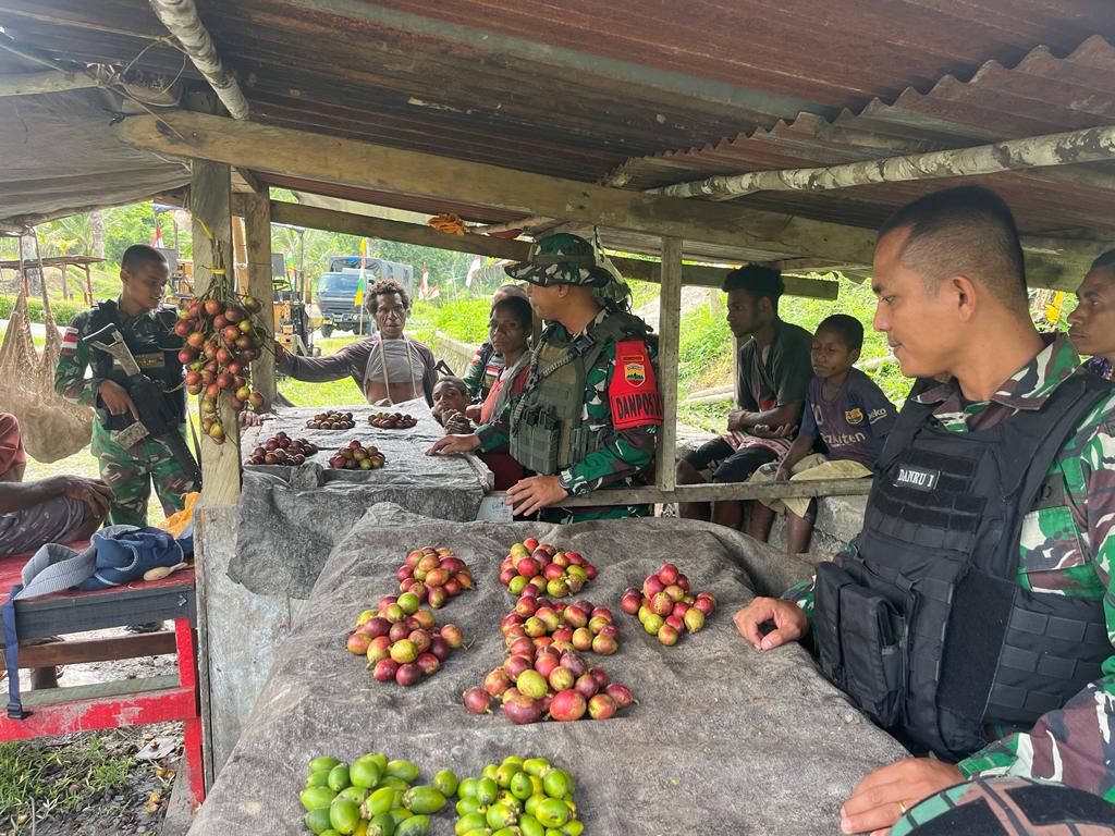 Tingkatkan Ekonomi, Satgas Yonif 122/Tombak Sakti Membantu memanen dan membeli Hasil Panen Warga Papua