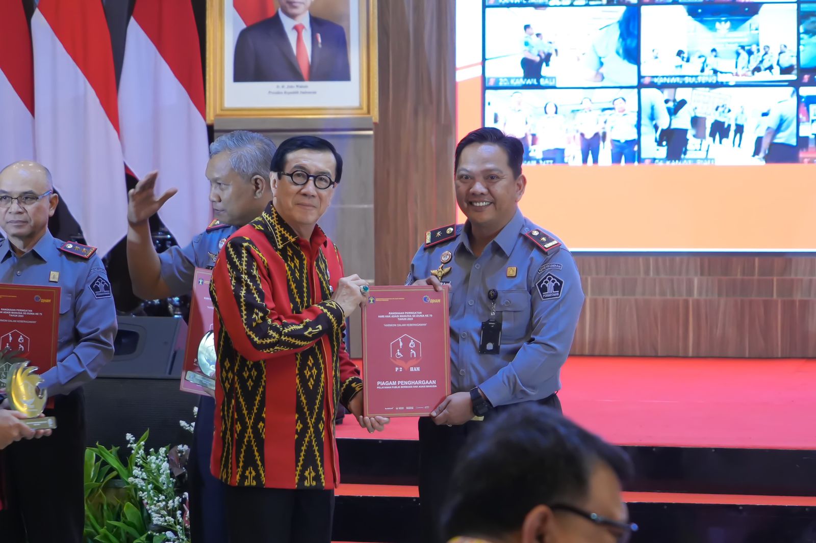 Tangerang (KPN) – Senin, 06 November 2023, Dalam rangka memberikan motivasi kepada segenap jajaran di Kementerian Hukum dan Hak Asasi Manusia pada setiap tahunnya Menteri Hukum dan HAM memberikan anugrah penghargaan kepada Unit Pelaksana Teknis (UPT) yang mampu menyelenggarakan pelayanan publik berbasis HAM (P2HAM).