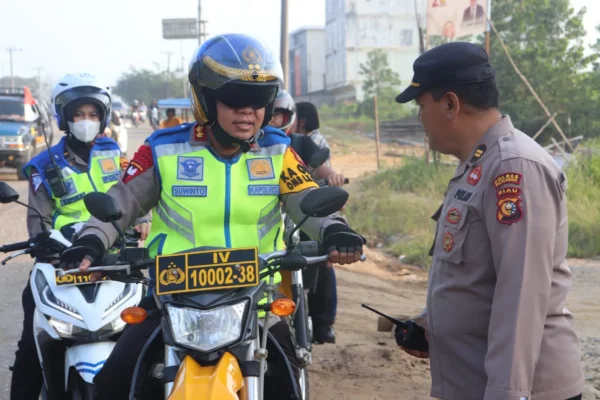 Kapolres Pelalawan didampingi oleh Kasi Propam AKP Rony Maka Suci SH, Kanit Reg Iden Satlantas Ipda Sefira STr.K dengan menggunakan kendaraan bermotor dinas roda 2. Selain melakukan pengecekan kondisi arus lalu lintas, Kapolres juga melakukan pemantauan di sejumlah titik rawan pelanggaran lalu lintas, diantaranya di daerah persimpangan dan lokasi halte bus karyawan.