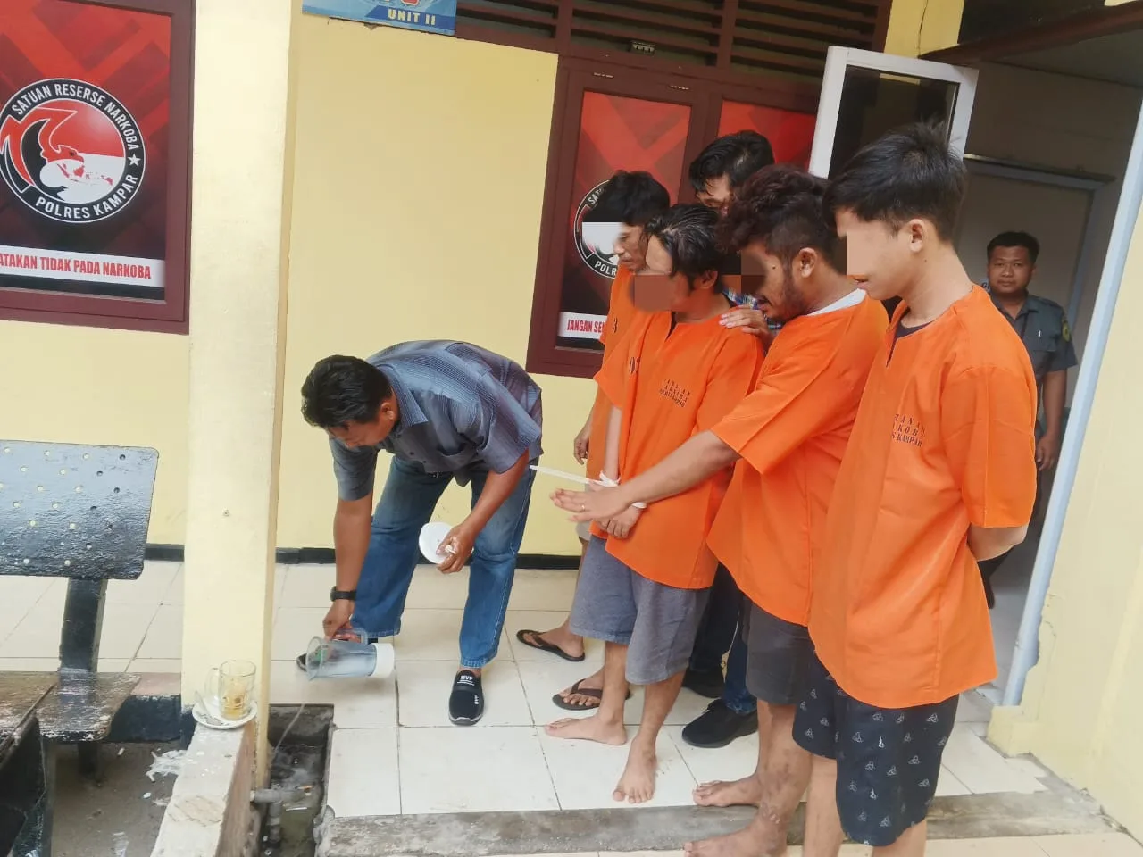Pemusnahan barang bukti di hadiri Kasatresnarkoba Polres Kampar diwakili oleh Ipda Joko Sumarno, Ketua Pengadilan Negeri Bangkinang diwakili oleh Aulia Fhatma Widhola, Kepala Kejaksaan Negeri Kampar diwakili oleh Addina Fiteisya, Penasehat Hukum Benny Zairalatha dan empat pelaku narkoba yang ditangkap sebelumnya yaitu berinisial JE, IN, CO dan IC.
