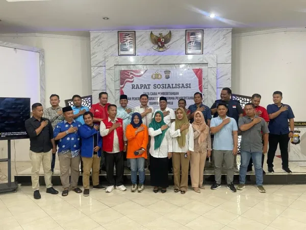 PELALAWAN – Menjelang pelaksanaan kampanye Pemilu 2024, Polres Pelalawan gelar rapat dan sosialisasi tata cara pemberitahuan serta penerbitan Surat Tanda Terima Pemberitahuan (STTP) kampanye pemilu di aula Teluk Meranti, Jumat (24/11).