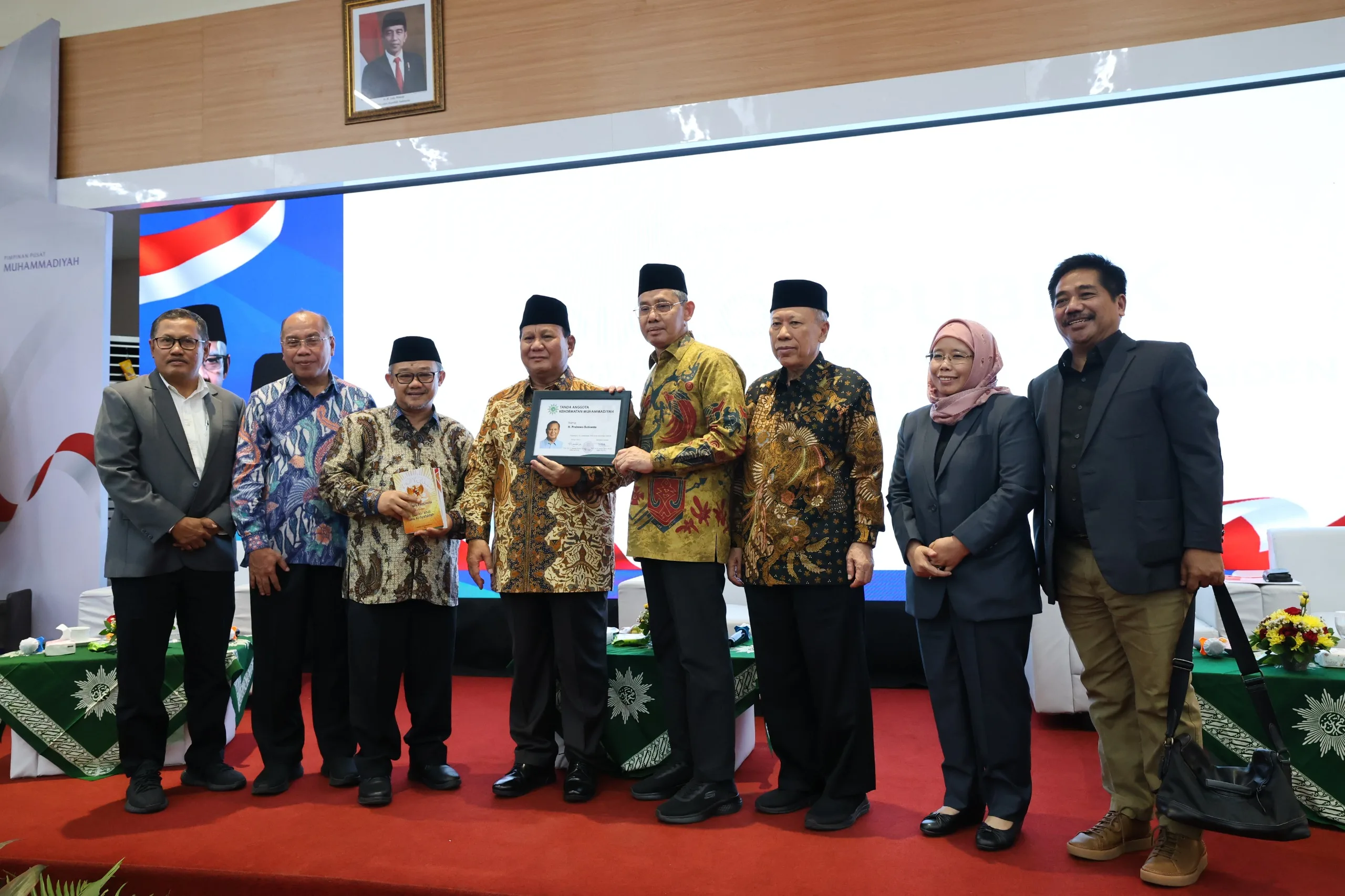 Surabaya – Calon presiden Koalisi Indonesia Maju Prabowo Subianto memberikan beberapa pandangannya dalam acara ‘Dialog Publik Muhammadiyah bersama Calon Presiden dan Calon Wakil Presiden Republik Indonesia’ di Universitas Muhammadiyah Surabaya, Jawa Timur, Jumat (24/11).
