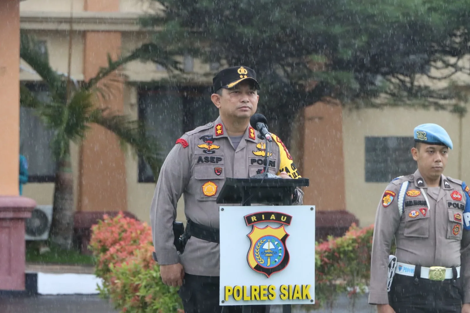 Apel gelar pasukan ini, berlangsung di lapangan apel Polres Siak dalam kondisi cuaca hujan yang dipimpin langsung Kapolres Siak, AKBP Asep Sujarwadi SIK MSI, Kamis (30/11/2023).